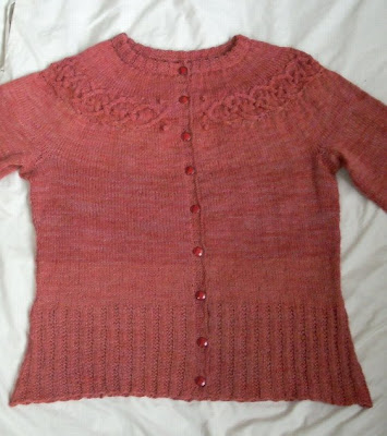 I really love this pattern and the way mine has turned out. I do not even mind the uneveness of the color across the middle of the body. Besides the early trouble with the ribbing, the pattern was easy and fun to follow. No modications here. I enjoyed knitting the cables. And it fits superbly as well.